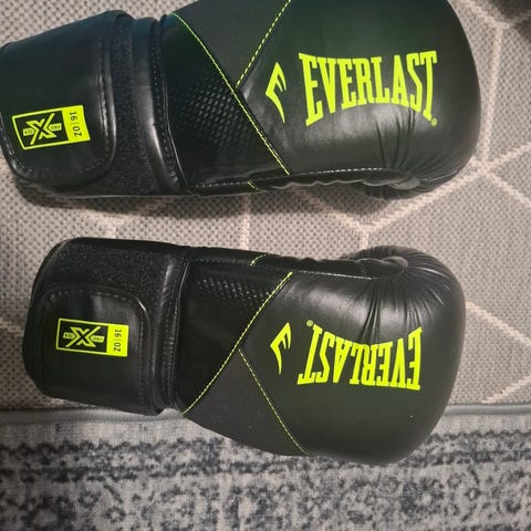 Everlast boxningshandskar i färgerna vit och svart. Handskarna är designade för boxning och erbjuder skydd vid träning och matcher.