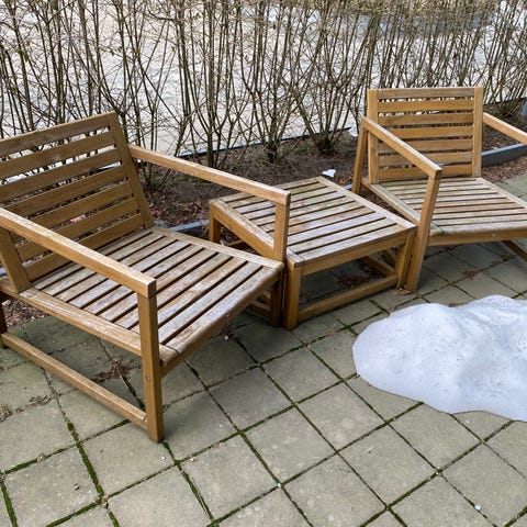 Ikea Nämmarö hörnsoffa säljs pga flytt. Soffan har stått ute under vintern och det finns behov av lite omsorg inför sommar säsongen. Dynor medföljer. Säljer även två stolar och ett bord samt insynsskydd Nämmarö i annan annons