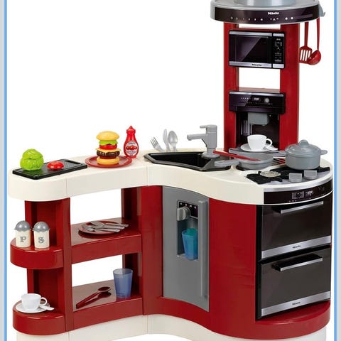 Lekkök i trä med vit färg. Köket har spis, ugn, mikrovågsugn och diskho. Passar för barn och kan användas för lek och rollspel. Kastruller och massor av plast mat ingår.