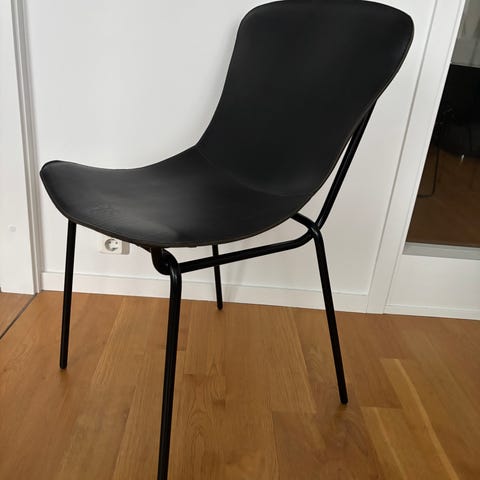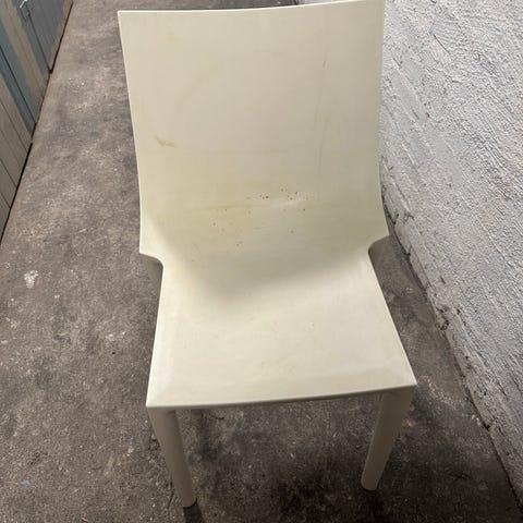 Inköpt på antikaffär - italiensk design. Stolen har en enkel design och är stapelbar, vilket underlättar förvaring och användning i olika miljöer. Behöver en tvätt med pink stuff. Tåliga och hållbara samt sköna att sitta i.