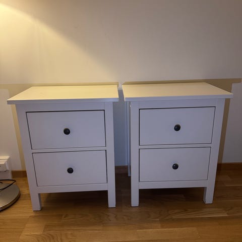 Två sängbord i helt ok skick. Rent och fint inne i lådorna. Ett från paret har lite mer repor (se bilderna). Priset är för båda.