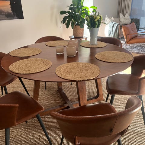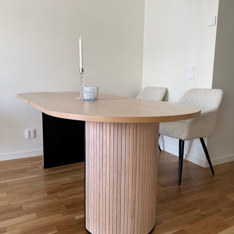 Stilrent och stabilt matbord i ekträ med plats för 6 personer.