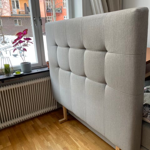 Säljer min jättefina säng 140/200 cm med sänggavel, kan leverera med extra pris
