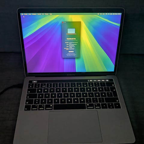 i7 6 cores 2,6 ghz, 16 GB ram, 500 GB disk, Touch Bar, grafikkort: AMD Radeon Pro 5500M.