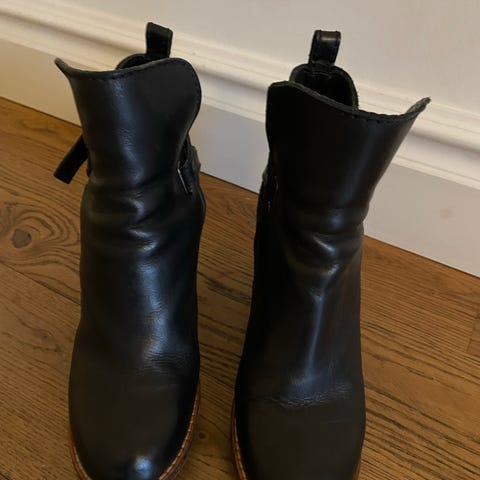 Stövlett i brunt skinn. 7 cm klack.