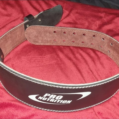 Pro Nutrition viktbälte i svart läder med spänne för justering. Används för stöd vid tyngdlyftning och styrketräning.