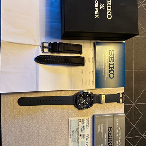 Seiko 5 Sports automatisk herrklocka med en boettstorlek på 42 mm. Klockan har en blå urtavla och levereras med två armband, original metallarmband, mesh (oanvänt) samt ett blått Nato-armband. Obetydligt använd och helt fri från repor eller skrap.