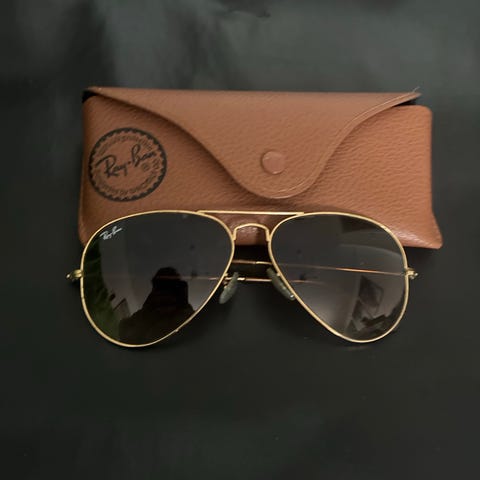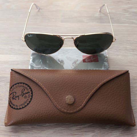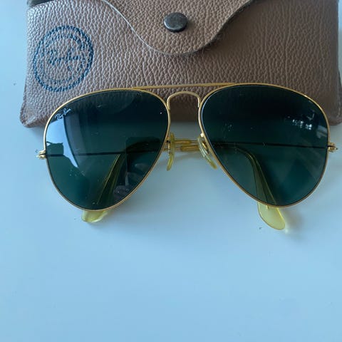 Säljer ett par original Ray-Ban Aviator-solglasögon i klassisk pilotmodell.