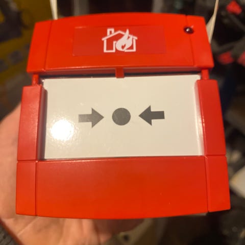 Actulux WSK 320 Brandtryck med RWA-taster i grå färg. Produkten har en tryckknapp för att bryta glaset och är avsedd för brandlarmssystem.