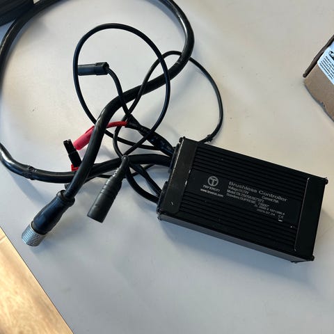 Elektronisk komponent med digital display och anslutningskablar. Produkten består av en kretskortsenhet med en numerisk display och flera ledningar för anslutning till andra elektroniska system. Ingen ytterligare information om märke, modell eller specifika tekniska egenskaper tillgänglig.