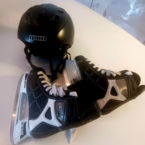 Barnskridskor (EUR 34), Barnhjälm, och Isdubbar