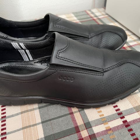 Svarta ECCO-skor i äkta läder i mycket bra skick. Skorna är endast använda två gånger och säljs eftersom de tyvärr är för små för mig. Bekväma, lätta och av hög kvalitet – perfekta för vardag och arbete. Klassisk design med snörning och vit sula.