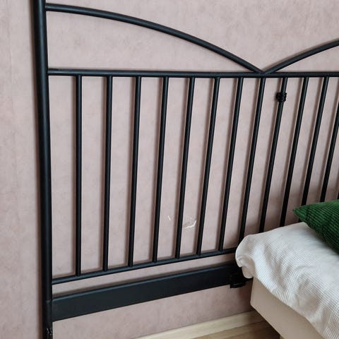 IKEA sängram i svart färg. Tillverkad i trämaterial. Passar resårbotten 160 x 200 cm. Sängramen har en stabil konstruktion med metallstöd under. Det finns fyra lådor under sängen. Två är monterade och två ligger fortfarande i sin förpackning. De vita kontakterna är bortmonterade utan spår efter att de suttit där. Sängramen är jättefin!
