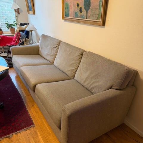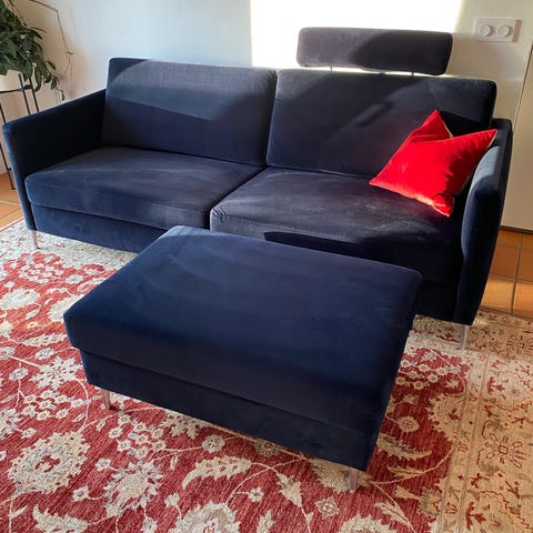 Soffan är stabil, mjuk och skön att sitta eller ligga på.