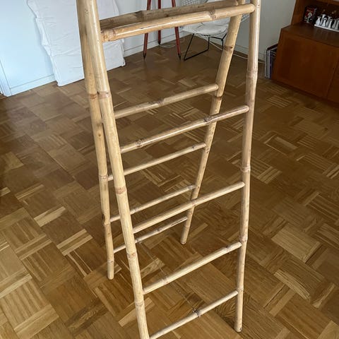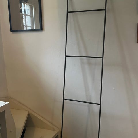 Stege i metall, mörkt grå. Avsedd att ställas mot vägg (för att undvika märken i väggen har jag satt på möbeltassar, se bild). Längd 171 cm, bredd 40 cm. Säljes mot avhämtning (svårt att skicka på grund av längden)