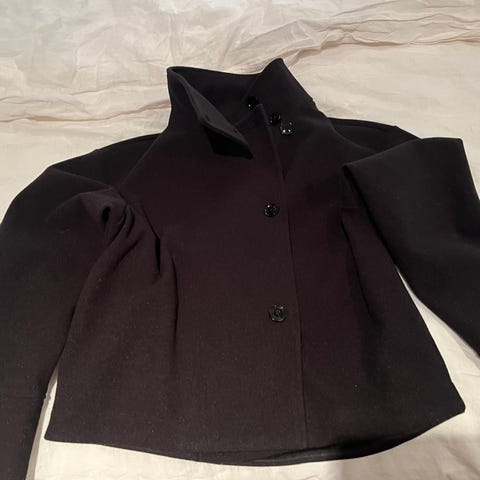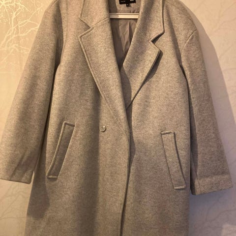 Grå kofta i storlek L men den är XL, från armhålan till armhålan är 58 cm, längd 68 cm.