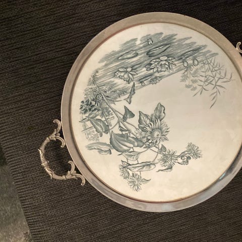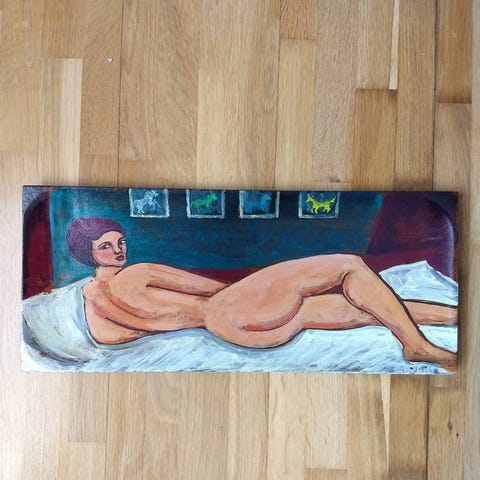 Teak bricka med oljemålning