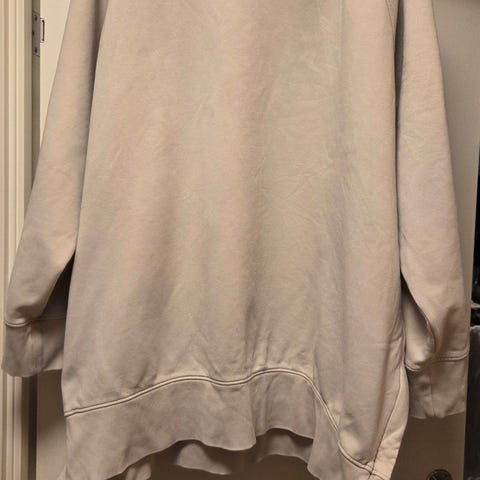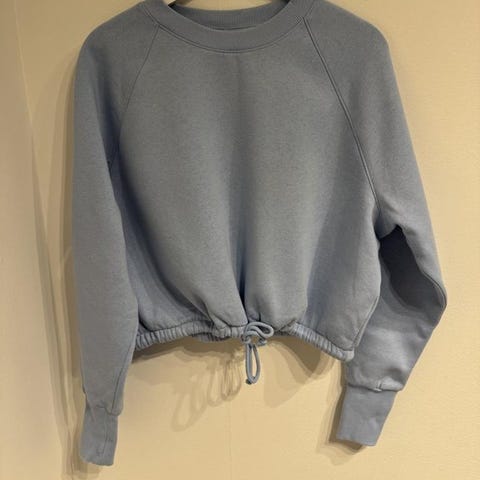 Grå sweatshirt med rund halsringning och ribbstickade muddar. Tröjan har en avslappnad passform.