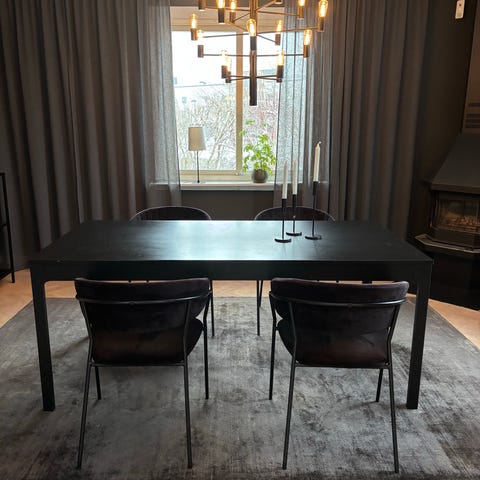 Matgrupp som utgått ur ikeas sortiment. I använt skick. Bordet ingår ej. Soffa 1000kr 3stolar 1000kr