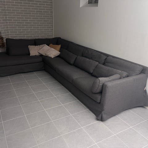 Soffan är inköpt 2025 o sparsamt använd. Djur o rökfritt hem. Klädsel Linen 007, 100% linne, avtagbar på hela soffan. Stoppning Lux.