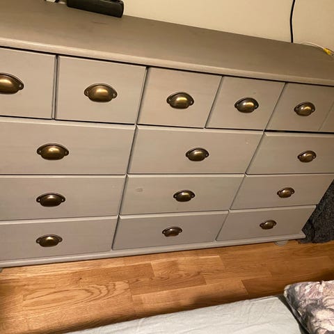 HAUGA sideboard från IKEA. I nyskick. Säljes pga platsbrist i kommande boende. Från ett djurfritt och rökfritt hem. Mått se foton. Hämtas av köparen. Bärhjälp finnes ej. Man behöver vara två personer som bör. Hyllplanen går att plocka ur. Priset går att diskutera vid snabb affär. Finns i Valskog. Betalas kontant eller Swish.