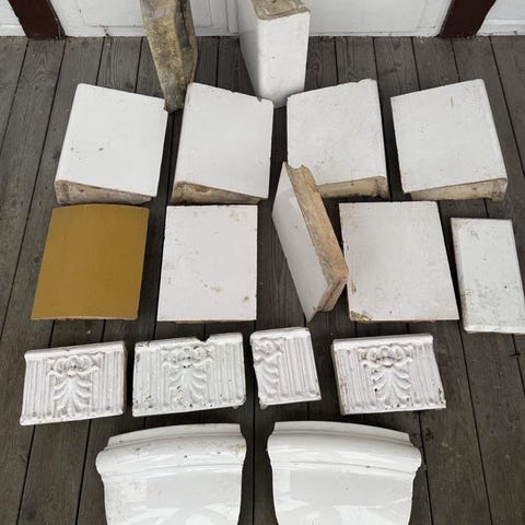 Kakelugn med dekorativa mönster. Monteras ner och fraktas bort av köparen och kan hämtas från 1 maj. Finns i Sköndal.