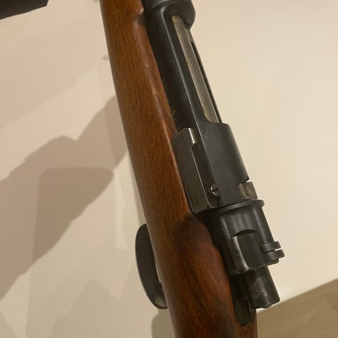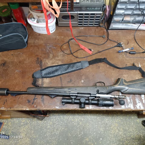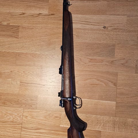 Bytt kolv till en Hogue med Rusan trycke och sidosäkring, flagg-säkringen är kvar. Det sitter kardborre på kolven som är till en kolvkamshöjare (den medföljer inte) som är lätt att ta bort. Allt är i bra skick och skjuter bra. Om man hämtar bössan medföljer 23st Copperbear jaktammo. Allt säljs som ett paket och bössan kräver givetvis licens.