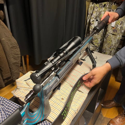 En fin Husqvarna 146 kaliber 9,3x57. Pipan är 48cm och gängad 15x1 medföljer en Stalon X ljuddämpare som är 23,5cm med max 375 h&h front.