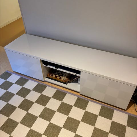 Tv bänk i högblank vitt. Inga synliga skador eller repor.