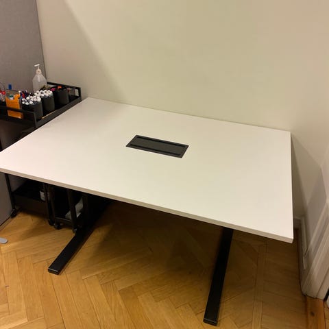 Ikea skrivbord med inredning och kablar