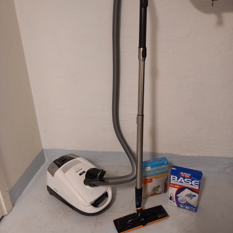 Electrolux dammsugare i vit färg med tillhörande munstycken och teleskoprör. Munstycket är löst och behöver tejpas, därav priset, kan användas ändå endast med teleskop röret eller tejpas med munstycket.