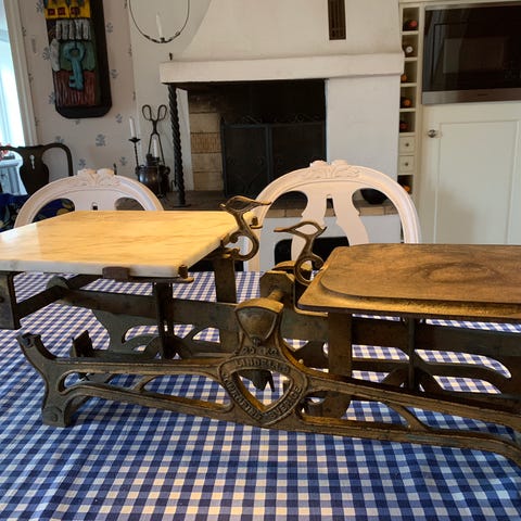 Gammal hederlig våg säljes i befintligt skick. Inga vikter finns. Fungerar men är inte kalibrerad.