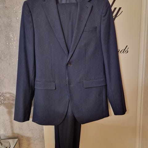 Helsvart kostym som använts 3 gånger. Skicket är nästan som ny. Den som köper bör testa kostymen. Byxor och kavajärm har kortats ner något för att passa mig.
