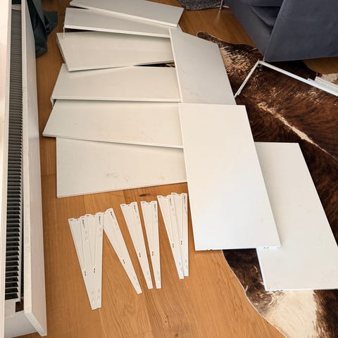 Två skrivbordsskivor från String i gott använt skick. Några mindre märken här och var men syns bara vid närmare granskning.