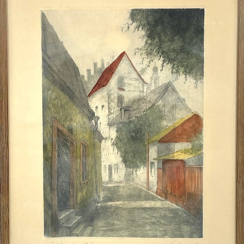6 Litografier I olika skick på ramar och inglasning