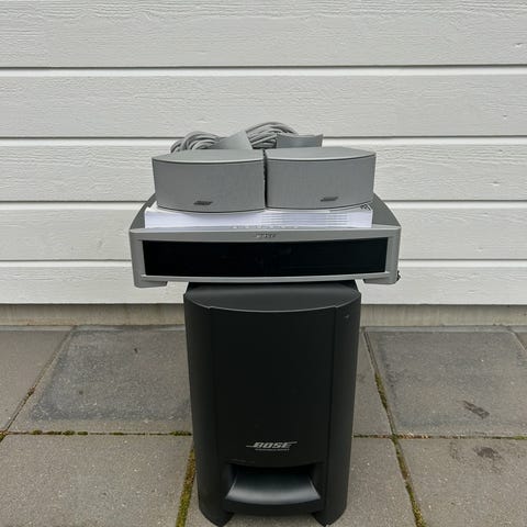 Bose ljudsystem med svart färg och kompakt design. Enheten har anslutningsmöjligheter för ljudingång och är avsedd för ljuduppspelning. Bra ljud samt det medföljer ett fodral hemmagjort i skinn som försluter högtalaren!