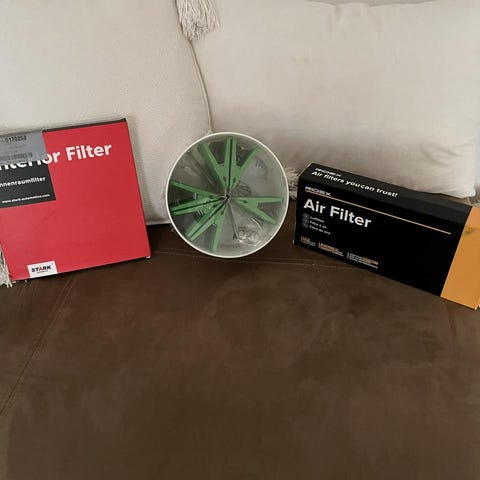 Oljefilter, termostat, drivknutsdamask & en bromsslang fram (höger/vänster). Termostaten passar även Volvo 850 samt Opel & Ford. Exakt modell får du googla fram själv. Alltså ett gäng "bra att ha" delar om man sitter på tex en A3 eller liknande bil.
