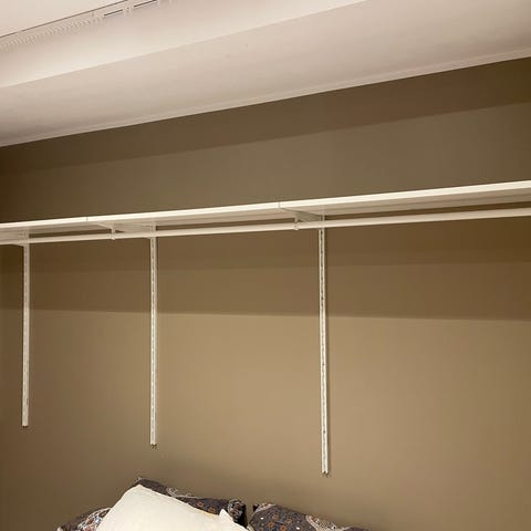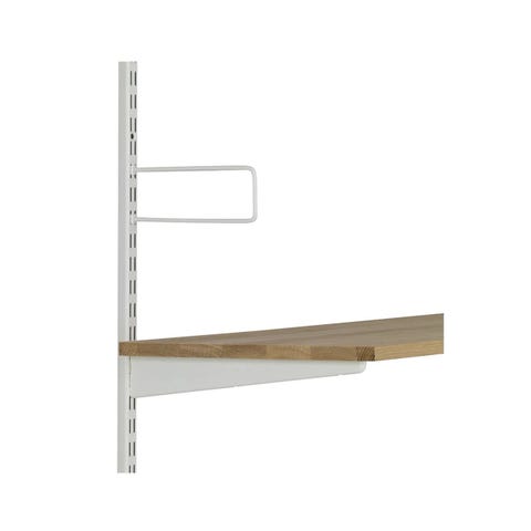 Fin Norrgavelhylla. Svartbetsad stomme, vitmålade hyllplan.