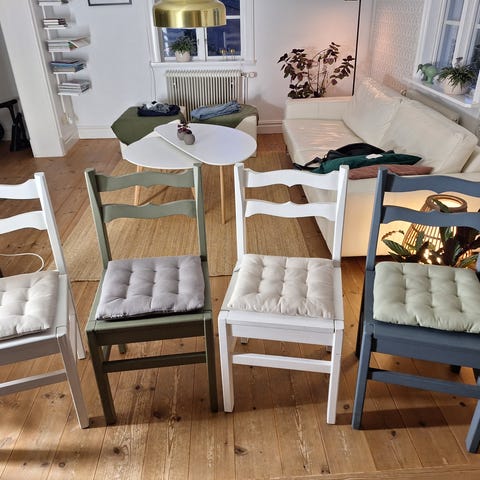 Två grå stolar med svarta ben. Säljer båda för 250 kr