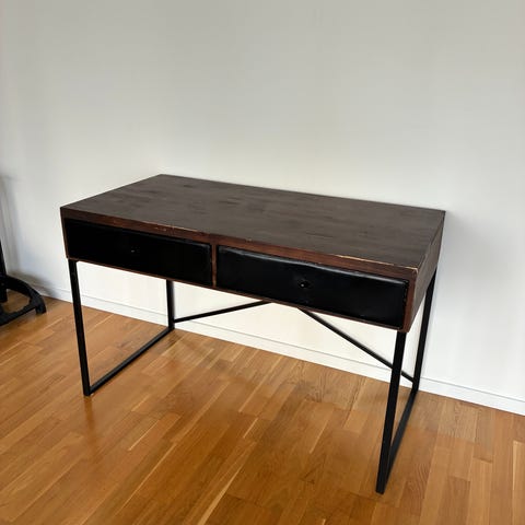 IKEA KULLABERG skrivbord med måtten 110x70 cm. Industriell stil med bordsskiva i trä och ben i svart metall. Passar för arbets- eller studiemiljöer.