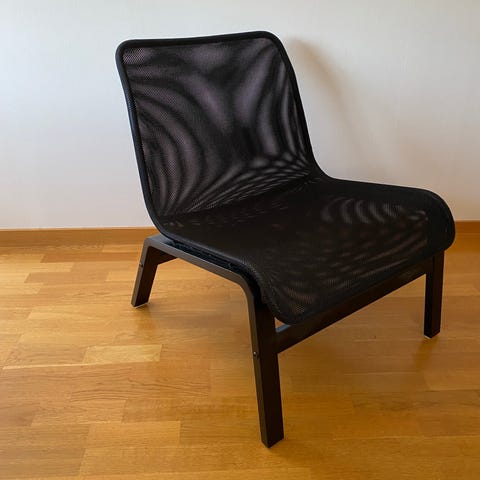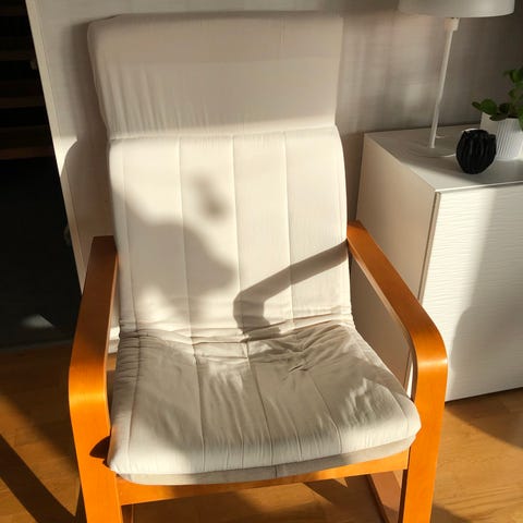 Fåtöljen POÄNG har stilrena svängda linjer i formböjt trä, skönt stöd för nacken och behaglig svikt.