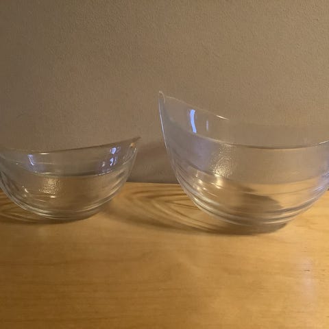 Två stycken räkbåtar, en lite större och en mindre, från Nybro glasbruk.