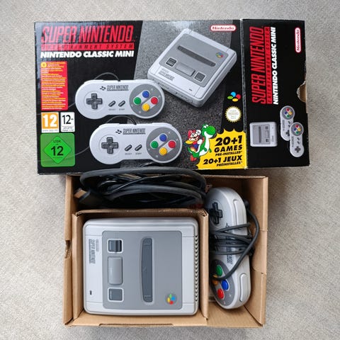 Original Nintendo Entertainment System Nintendo 8-bit Spelkonsol inklusive fem handkontroller, Originalförpackning, 3st spel, en ny connector, kablar och Nes zapper.