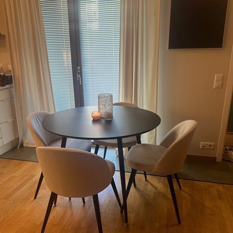 Säljer vackert matbord med 4 stolar från Ellos i praktiskt taget nyskick. Möblerna är knappt använda.