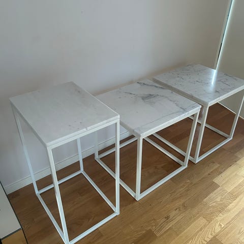 2 stycken fina soffbord i marmor. Ett större och ett mindre sidobord.