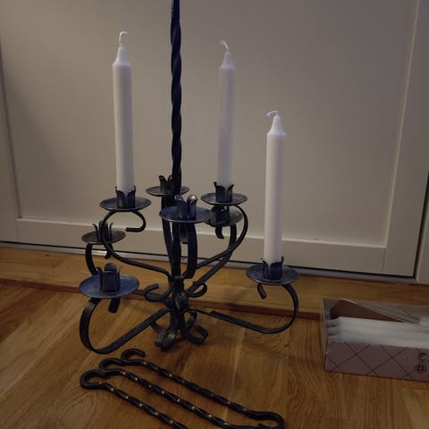 Ljusstake gjutjärn svenskt hantverk takkrona bredd 27cm