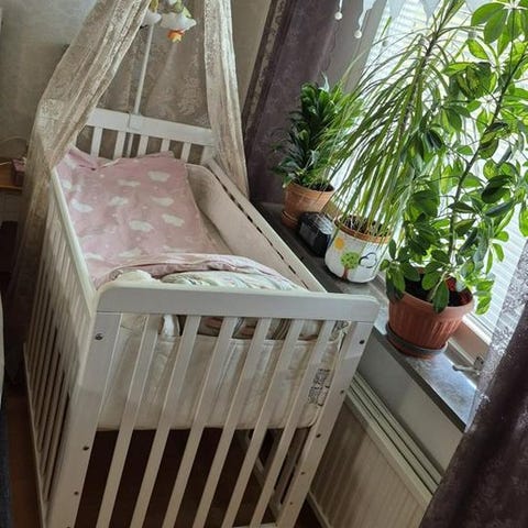 Madrass IKEA SKÖNAST och babyfilt IKEA LEN är också oanvända och ingår i priset.