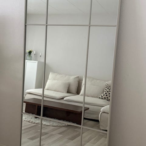 Stor vit Nordal spegel med vit järnram pga flytt, köpt för 8900kr. 200cm x 100 cm