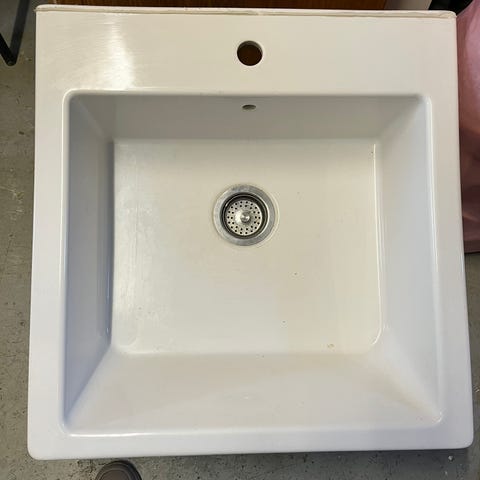 Köksskåp vit trä, mässing handtag, blandare , diskho (ej vitvaror )
