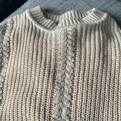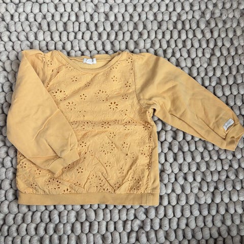 H&M tröja i storlek 122 för barn, unisex. Tillverkad i polyester med gul färg. Tröjan har en stickad struktur och långärmad design.